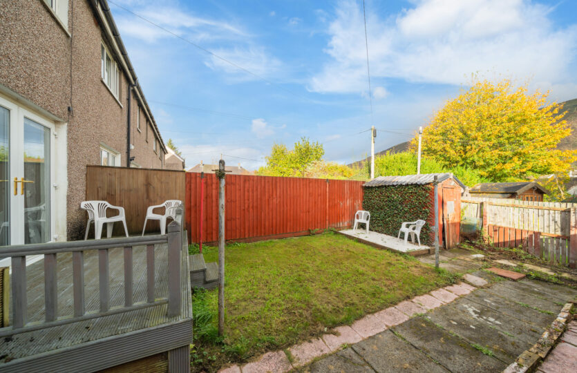 The back garden has a good-sized decking area and also a patio area overlooking the lawn.