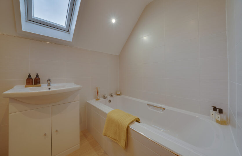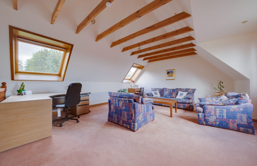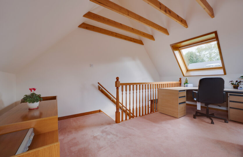 Outside, the beautifully landscaped back garden is fully enclosed by established hedging and bushes along the boundaries, and this creates a relaxing haven to enjoy the carefully tended garden from the comfort of the patio area or the pretty seating area nestled in the top corner of the garden. The lawn, reached via a small number of steps, is the perfect place for children to play. The southeast facing back garden enjoys sunshine from morning till early evening – ideal for alfresco dining during the summer months. The front garden is mainly laid to lawn and has an attractive seating area to enjoy the views.